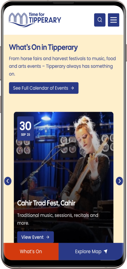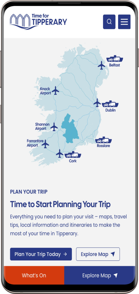 What was needed was a modern platform—immersive, vibrant, and easy to manage—that could capture the beauty, energy, and scale of Tipperary. The new site had to prioritise speed, SEO, and seamless navigation, while giving pride of place to stunning imagery, engaging video, and rich storytelling. Most importantly, it needed to inspire visitors to start planning their trip.